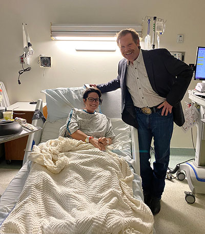 Janel Flook with J. Patrick Johnson, MD, after her surgery.