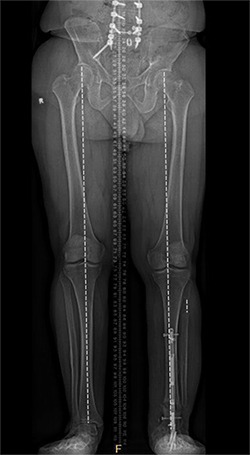 Guy Natale X-ray before leg lengthening. Notice the difference in the level of the knees.